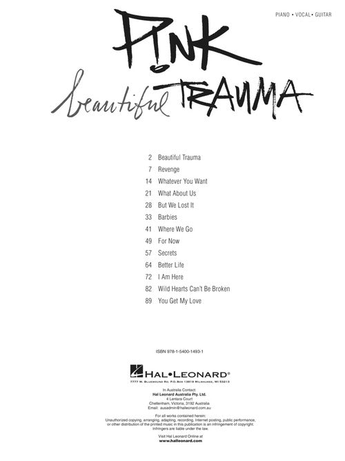Pink – Beautiful Trauma – Piano, Vocal, Guitar